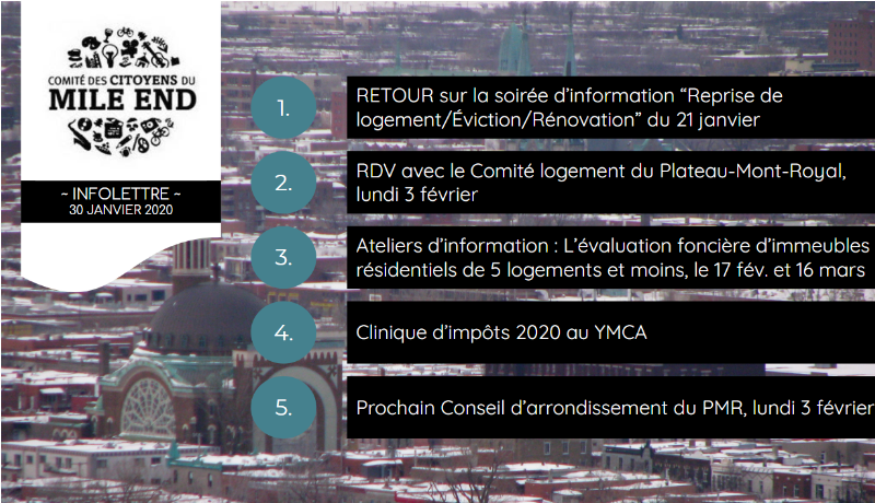 Infolettre du Comité des citoyens du Mile End – 19 Décembre 2019